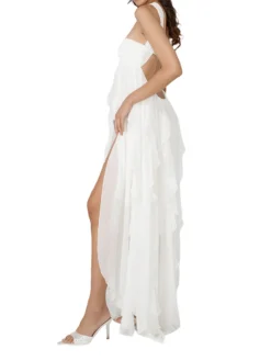 Women Summer Sleeveless Dress Irregular Ruffle Hem Backless Cocktail Party Dress for Beach Club Streetwear Elegant Fairy Clothes