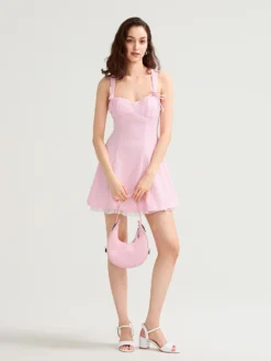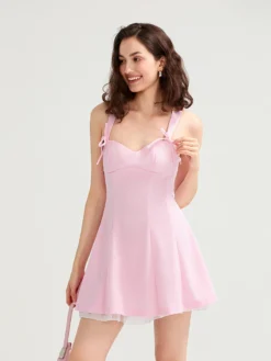 Women’s Summer Corset Mini Dress Fashion Sleeveless Bow Tie Strap Solid Color Tank Dress for Party Elegant Casual Sundress