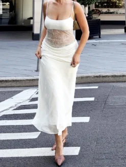 Summer Women’s Long Cami Dress for Party Eveing Club Sleeveless Open Back Lace Patchwork Bodycon Dresses