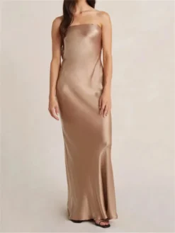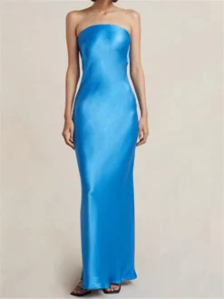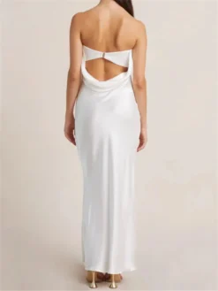 Women Sleeveless Backless Dress, Solid Color Strapless Elegant Cocktail Party Wedding Banquet Dress