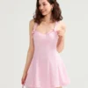 Women’s Ruffle Hem Cami Dress Sleeveless Spaghetti Strap Deep V Neck Mini Dress Going Out Dress
